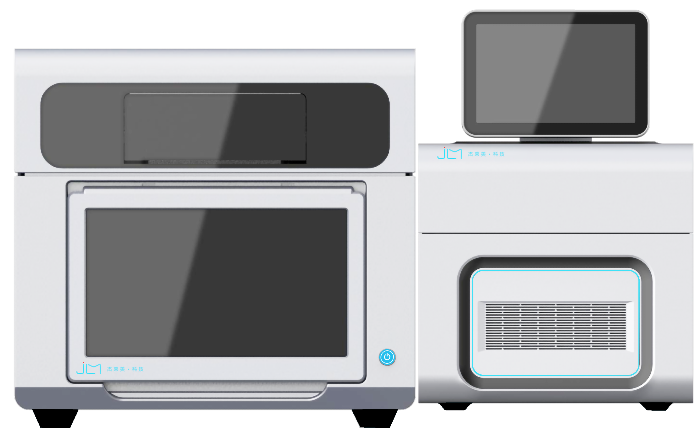 杰莱美 Digital Matrix 数字PCR系统基于全新的一体式集成微流控芯片技术,将核酸分子通过芯片微流控管道分散到数万个独立微反应单元中,并对每个反应单元进行独立的PCR扩增与荧光信号检测,再根据泊松定律和统计阳性信号,准确计算出反应体系中靶标DNA分子的绝对数从而实现高精度的定量分析。具有不依赖标准参考品、极高的抑制物耐受、极高的灵敏度、准确度和极佳的重复性等特点,是超越实时荧光定量PCR的第三代绝对定量分析技术。